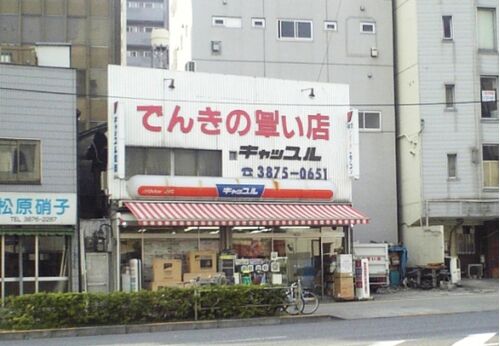 通りすがりの小学生の会話: A: あそこ、「でんきのたかいみせ」だって B: 「たかい」がぎゃくになってる! C: え、あんな字あるの? (以下略) 「でんきのやすいみせ」と読ませたいのだろうが、その想い空しく3人はただ「たかいみせ」「たかいみせ」と言う…